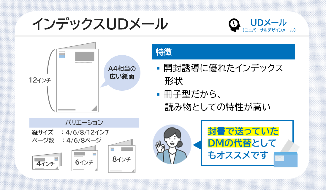 UDメールは、冊子型の大判DMです。