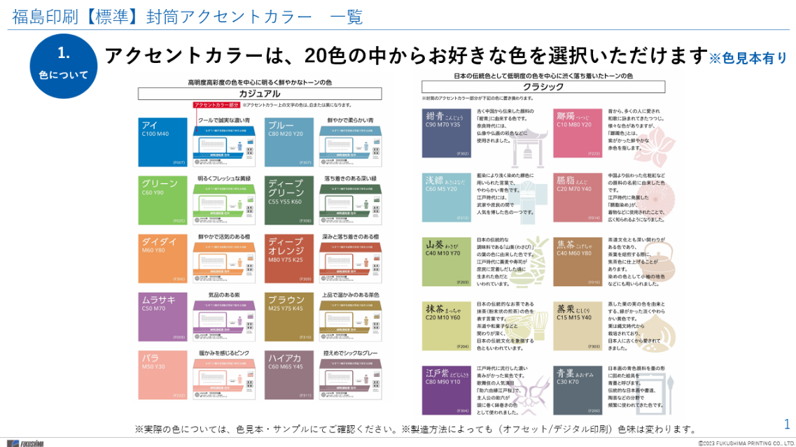 福島印刷のポイントカラー封筒は、デザイン面でも大きな特長があります。